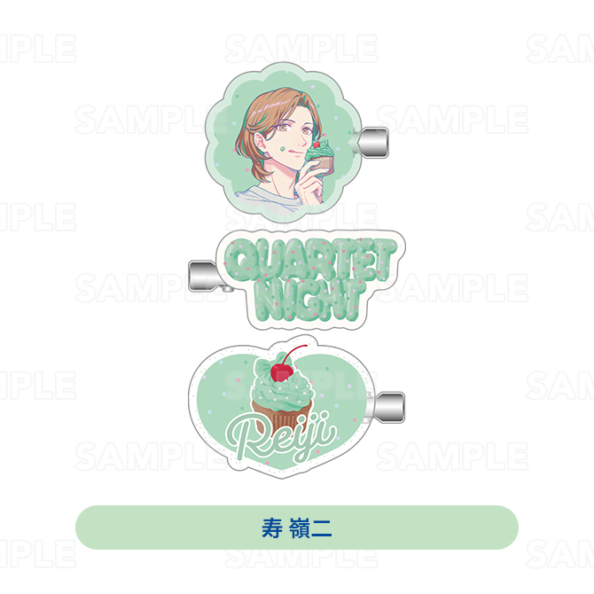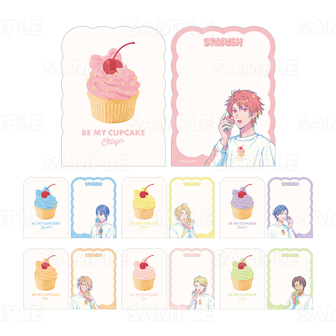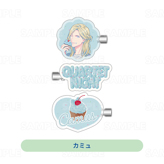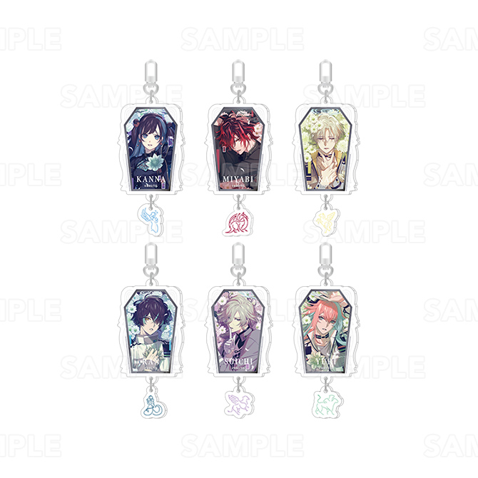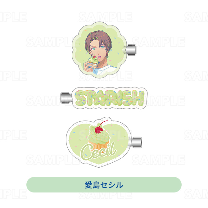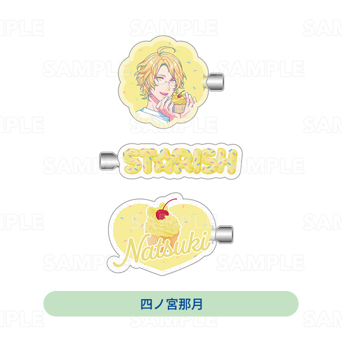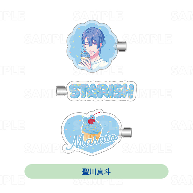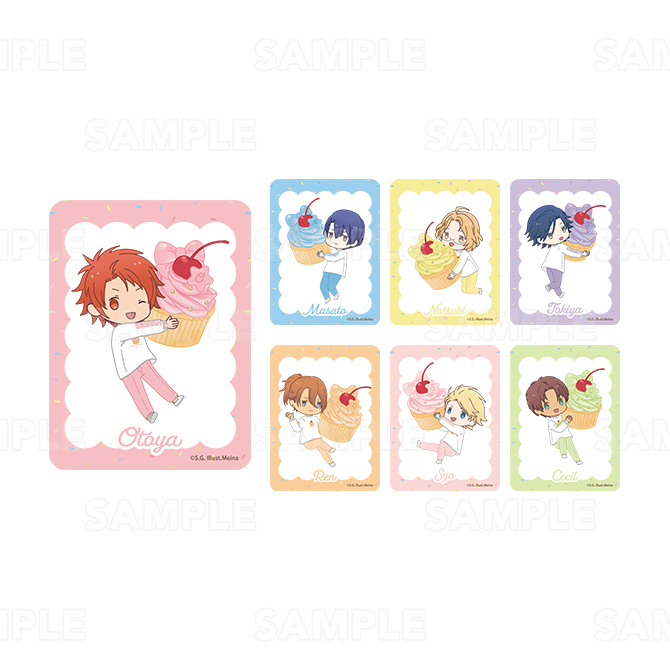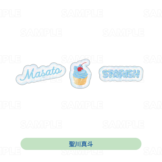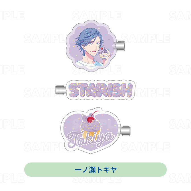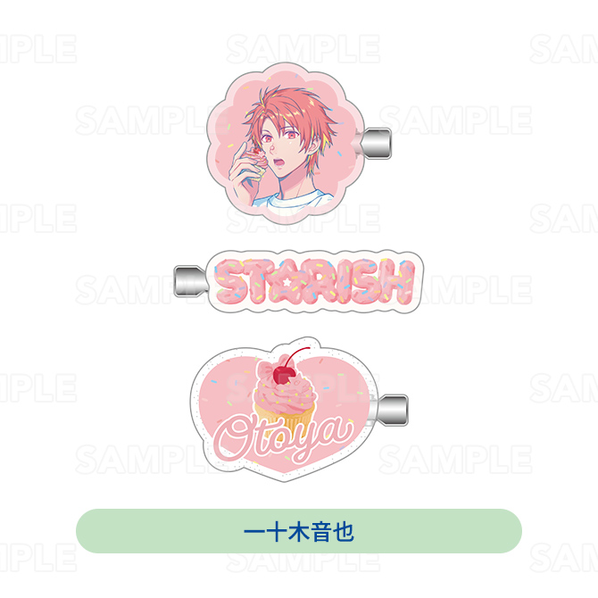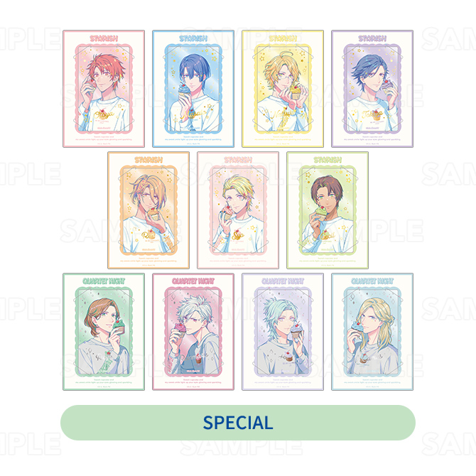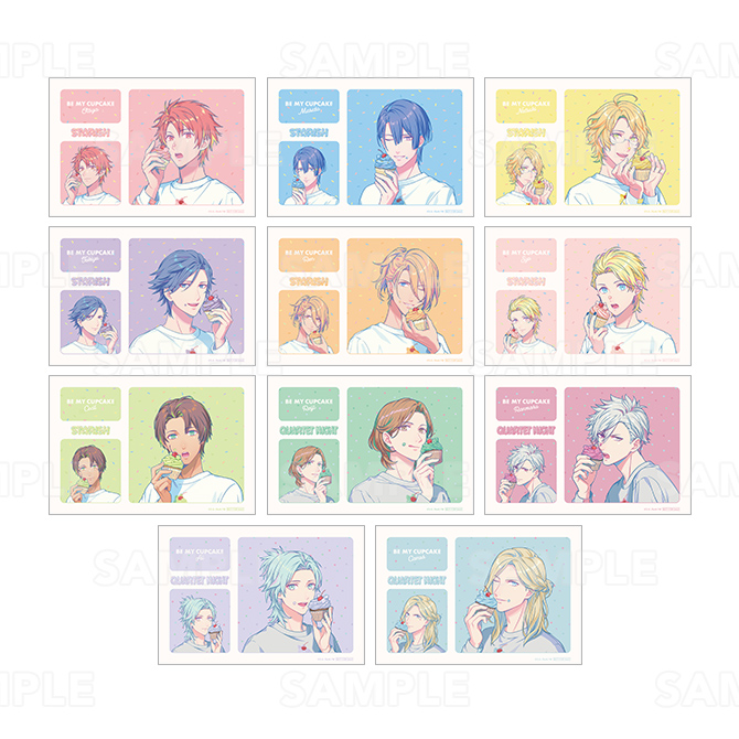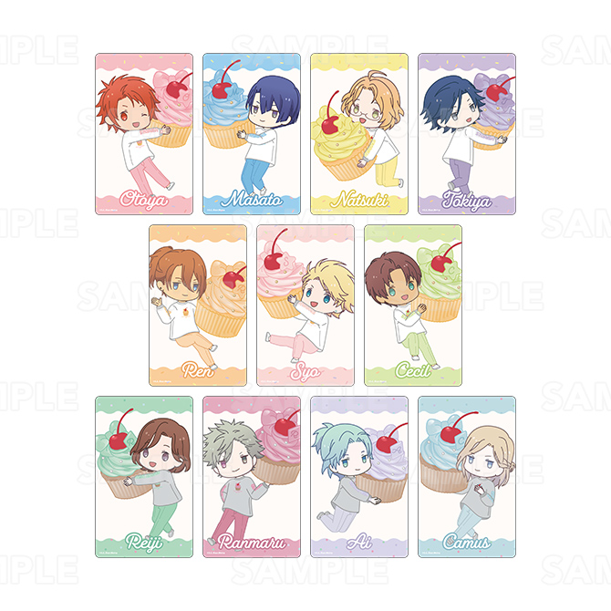 全11種 「一十木音也」 「聖川真斗」 「四ノ宮那月」 「一ノ瀬トキヤ」 「神宮寺レン」 「来栖 翔」 「愛島セシル」 「寿 嶺二」 「黒崎蘭丸」 「美風 藍」 「カミュ」 |