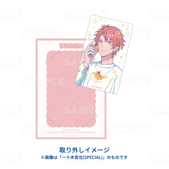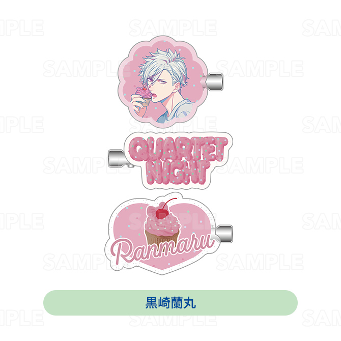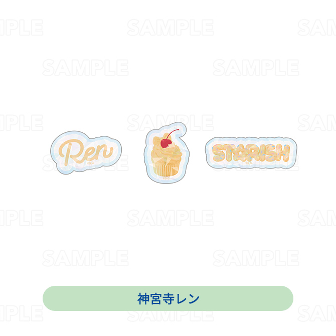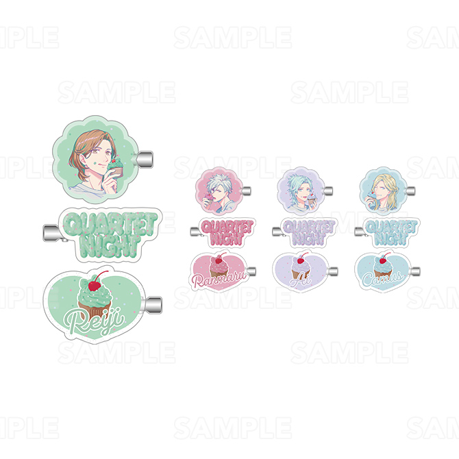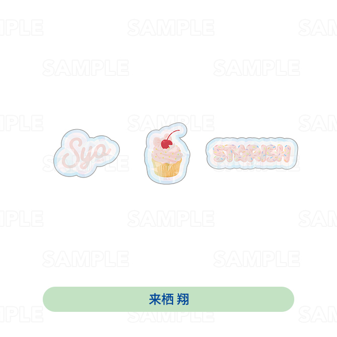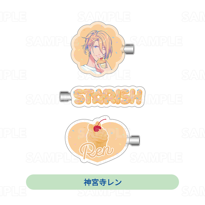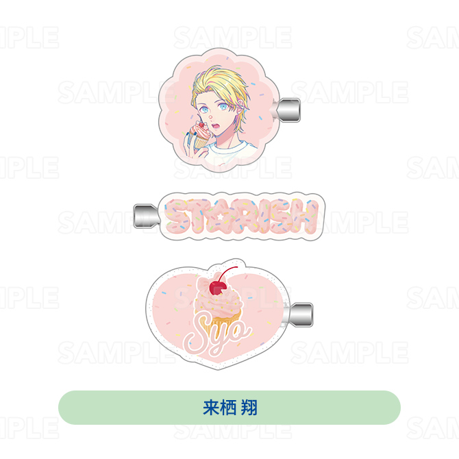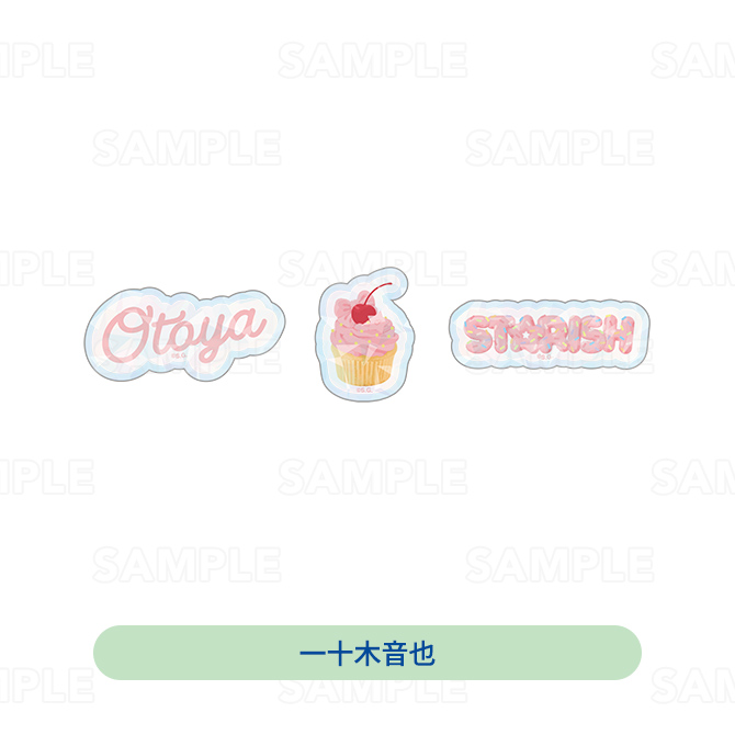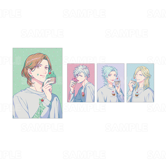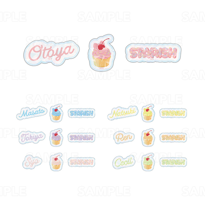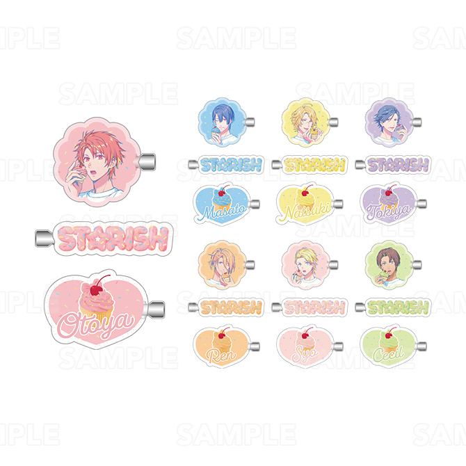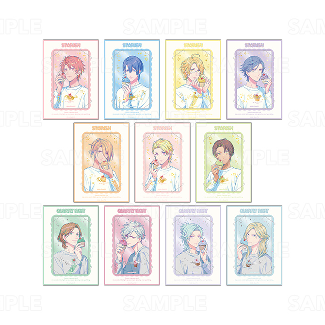 全11種 「一十木音也」 「聖川真斗」 「四ノ宮那月」 「一ノ瀬トキヤ」 「神宮寺レン」 「来栖 翔」 「愛島セシル」 「寿 嶺二」 「黒崎蘭丸」 「美風 藍」 「カミュ」 |