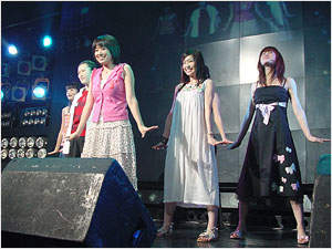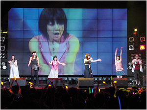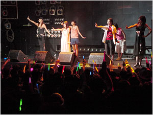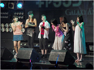 【商品名】DVD ミュージカル『ギャラクシーエンジェル』 【税込価格】7,140円 【発売日】好評発売中【2005年6月24日(金)】 ◆2005年5月20日(金) Go!Go!Go!Fairies イベントレポート 5月5日に行われたイベント、「Go!Go!Go!Fairies」に舞台版エジェル隊、富田さん・小出さん・川口さん・白川さん・明坂さん・中山さんの6人が参加。ミュージカル中に歌われた4曲を熱唱してくれました。歌ったのはこの4曲↓ 『ギャラクシーエンジェル』 『いつも一緒にネ!』 『エンジェル隊からあなたへ』 『Eterna Love』 みんなからの「だよね〜!」コールにキャストも大感激! トークではDVDの見どころの話も……。映像特典にはステージ裏の皆が見られるマル秘映像も入っているということで、会場も大いに盛り上がりました! さらに、7月23、24日の東京キャラクターショー2005に富田さん、白川さん、中山さんが来るという発表もあり、まだまだエンジェル隊から目が離せないことを実感しちゃった人も多いはず! キャラショーに関しては、今後このHPでも告知していくので、楽しみに待っていて下さいね。