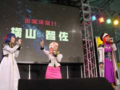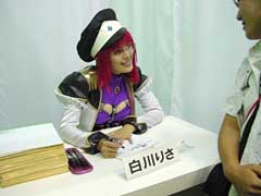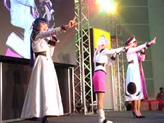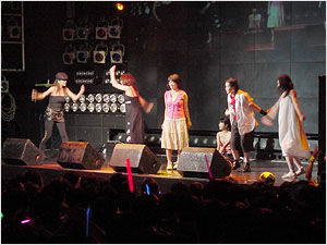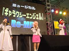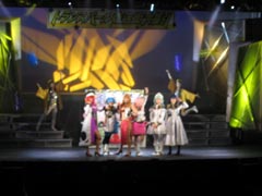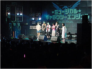 ●ニュースサイト ●ユーザー記者サイト ◆2005年9月29日(木) オールジャンル同人誌即売会「コミックキャッスル」にエンジェル隊登場!?10月23日に池袋サンシャインシティで行われる、 オールジャンル同人誌即売会「コミックキャッスル」で、ミュージカル『ギャラクシーエンジェル』の公式同人誌を無料配布いたします!! キャスト・スタッフによるミュージカルの裏話や「Re-MIX」関連話など、何が飛び出すか分からない、無礼講万歳本です☆ゲストも呼んで、豪華にする予定ですヨ〜。当日はキャストも売り子として参加予定! 「Re-MIX」のチケットやグッズの手売りもするから是非来てくさいね! ◆2005年9月15日(木) フリーペーパー「アニカン」Vol.12にミュージカルメンバーのインタビュー掲載![]() メンバーはミルフィーユ役の富田さん、ランファ役の小出さん、フォルテ役の白川さん、ちとせ役の中山さんの4人。大いに盛り上がりました! 「Re-Mix」に向けての意気込みや、エンジェル隊の仲良しさが伝わる内容になっていますよ〜。 ぜひぜひチェックして下さいね! ◆2005年7月28日(木) 東京キャラクターショー2005イベントレポート7/23,24に行われた東京キャラクターショー2005。ミュージカル『ギャラクシーエンジェル』のキャストから、ミルフィーユ役・富田さん、フォルテ役・白川さん、ちとせ役・中山さんの3名が参加してくれました。サイン会、「トランスバール商店街」ブースでのグッズ手渡しや「GAシアター」でのアテンドなどもあり、大忙しの3人。24日の「GAシアター」では、一度だけミルフィーユとちとせの衣装交換(!)というレアな一幕もありました。 メインはやはり23日のステージ。ミュージカルでの衣装を着た3人が、登場と共に「Eternal Love」を熱唱、会場はあつい声援に包まれました。 ここで3人から次回公演「ミュージカル『ギャラクシーエンジェル』Re-MAX(仮)」の話が出て、そしてそして、この日まで秘密にしていた、ビッグなお知らせもついに発表されました! なんと!! 次回公演には、アノ「サクラ大戦」のサクラ役などで有名な、横山智佐さんが出演して下さるのです!! 3人もドキドキとのことですが、気合は上々、「前回来てくれた人にも、DVDで初体験した人にも、今度は行ってやるかぁ〜という人にも、みんなが楽しめる舞台にします!!」と熱く語ってくれました。 最後はやっぱりコレ、「いつも一緒にネ!」。 ステージ自体は短い時間でしたが、お客さんと一体となり大盛り上がりのイベントとなりました! 次回公演のチケット発売などの詳細は、これからちょっとずつこのHPで告知していきますので、チェックしていてくださいね。