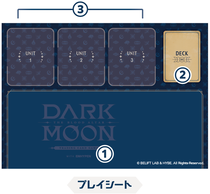 ゲームをプレイする際は、プレイシート (下の画像) の配置でカードを置いていきます。