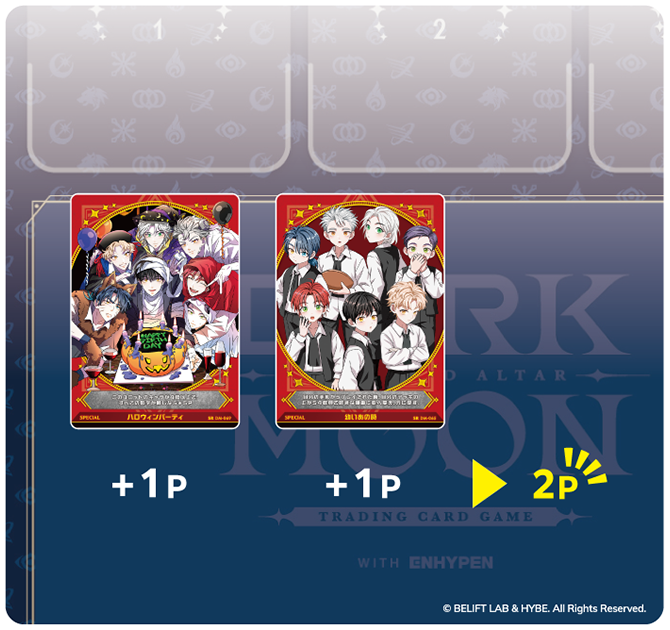 「DARK MOON : The Blood Altar with ENHYPEN TRADINGCARDGAME」 では2種類のカードを使って遊びます。