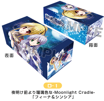 べっかんこう先生描き下しイラストを使用した『大図書館の羊飼い』のヒロイン「鈴木佳奈」のラバープレイマットなど、魅力いっぱいの景品14種に加えて、ファイナルドロー賞には不動の人気を誇る『夜明け前より瑠璃色な-Moonlight Cradle-』のヒロイン、フィーナのラバープレイマットをご用意しました!!